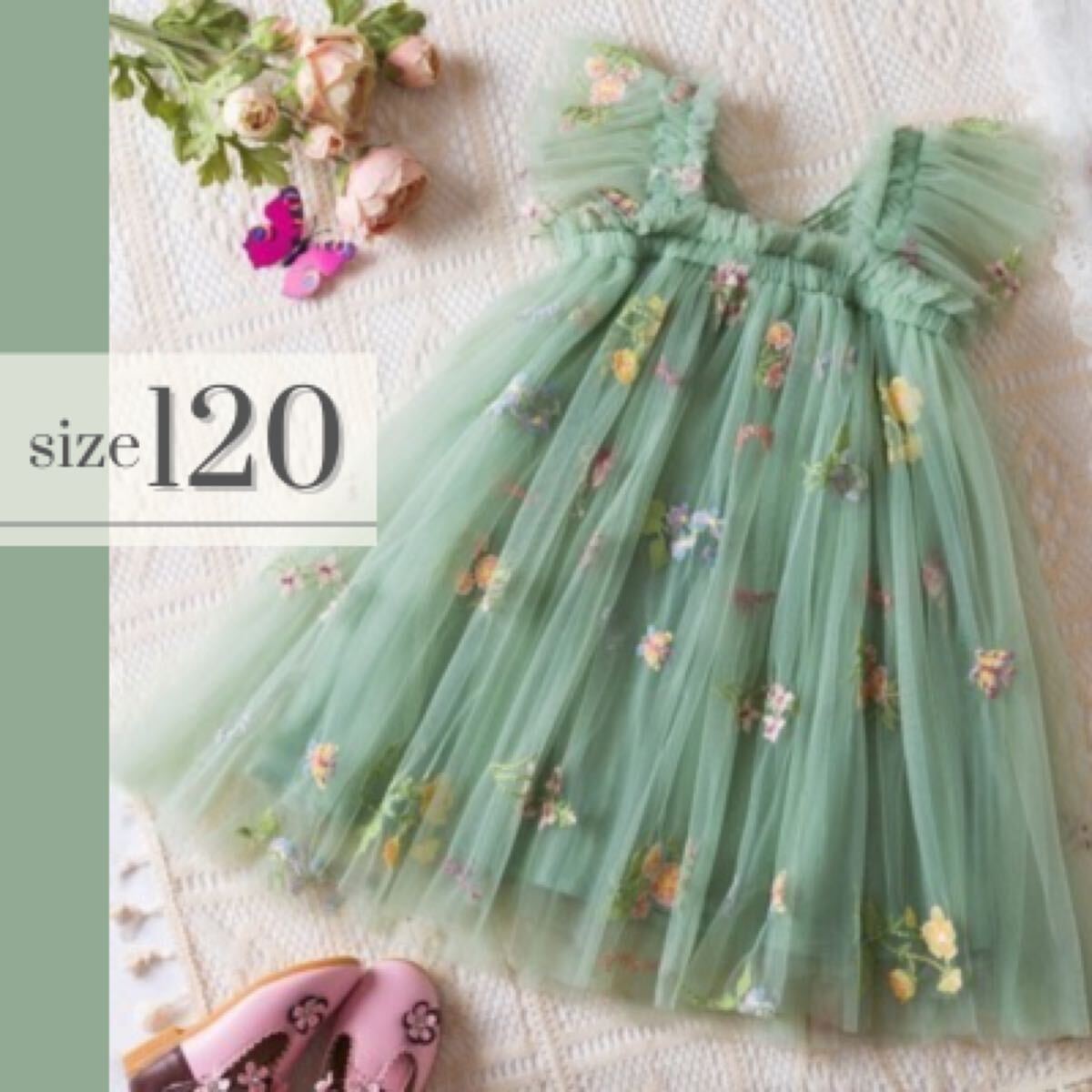 - 女の子 ドレス 120 チュール 花 羽 リングガール 結婚式 発表会 誕生日 ワンピース ハロウィン キッズ セレモニー ティンカーベル 羽