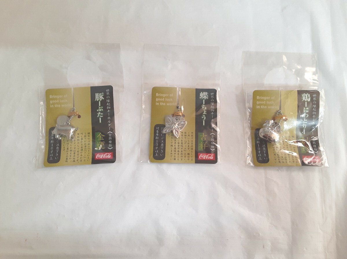 - ☆コカ・コーラ☆非売品☆世界の縁起物キーホルダー 全8種のうち3種☆長期保管品です☆蝶・豚・鶏☆