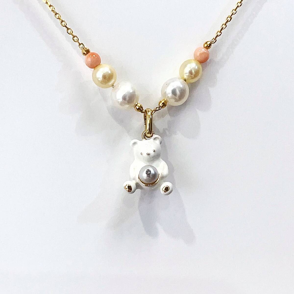 - SV925 天然 サンゴ AKOYA アコヤ ナチュラル ベビーパール ラインストーン テディベア モチーフ ネックレス 44.5cm 5.3g アクセサリー 新品