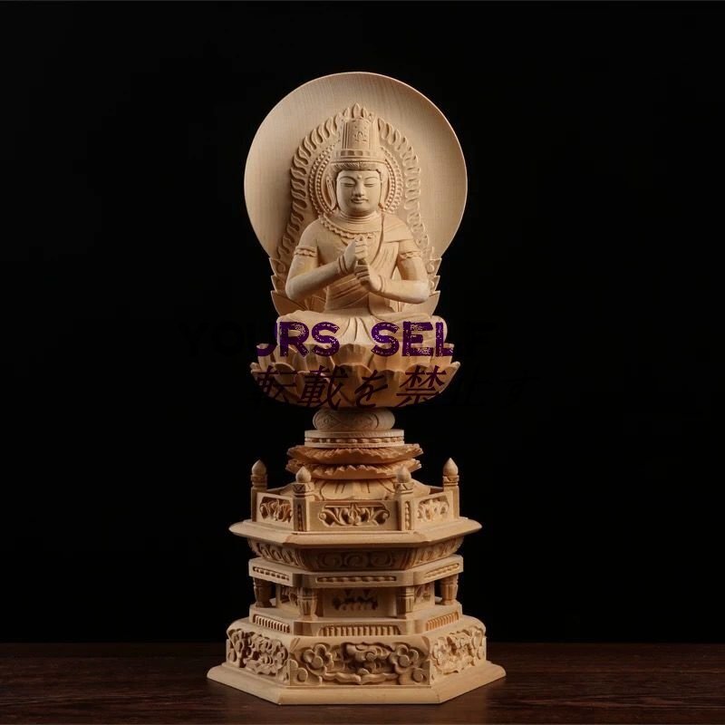 - 【仏教美術・仏像】檜木製・大日如来 仏像・大日如来坐像・手作り・唐草光背・大日如来(総高さ30cm)
