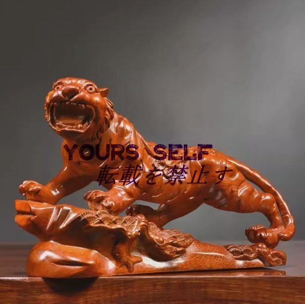 - 虎 置物 木彫り 干支 木彫 彫刻工芸品 2点セット