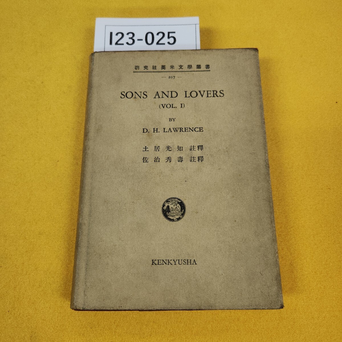 - I23-025 SONS AND LOVERS(VOL. I) D. H. LAWRENCE 研究社英米文學叢書 研究社 昭和30年5月発行 日焼け傷汚れ多数、蔵書印あり書き込み多数