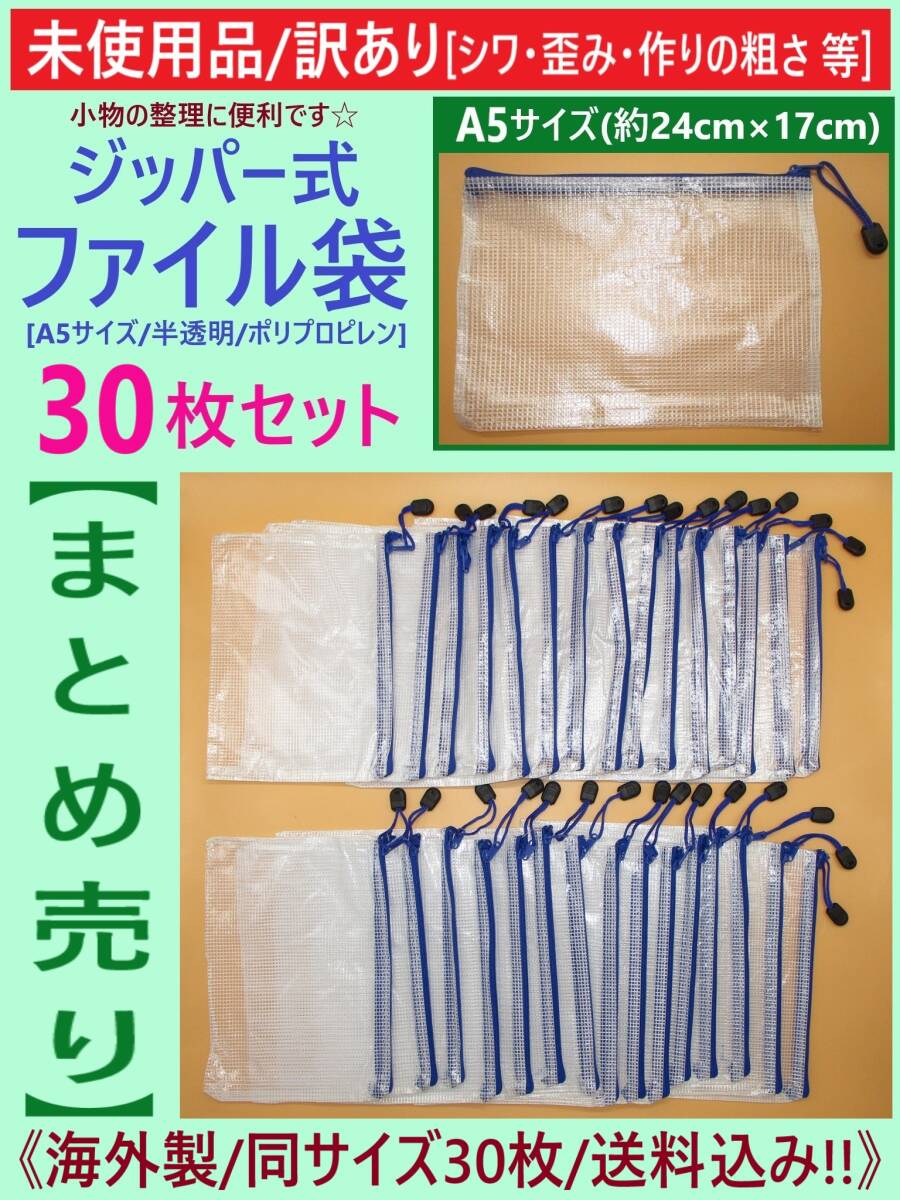 - 訳あり 未使用 ジッパー式 ファイル 袋 A5サイズ 30枚 A シワ 歪み キズ 半透明 白 メッシュ ファスナー チャック ケース 24×17 海外製
