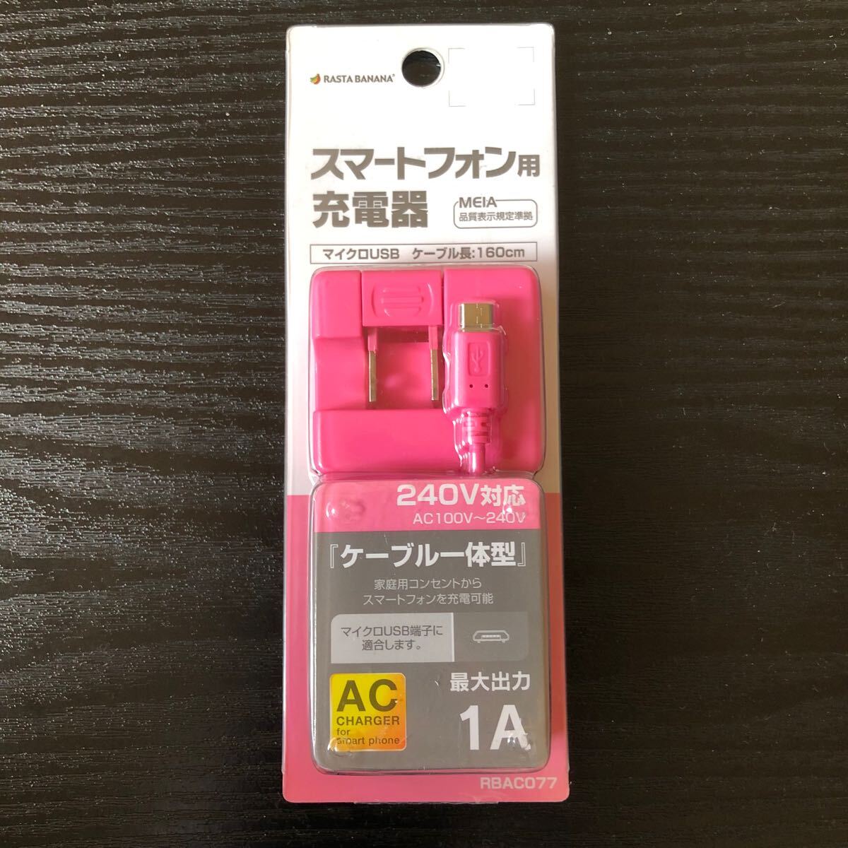 - 新品・未使用★スマートフォン用 充電器 マイクロUSB 160cm 240v対応★最大出力1A ピンク