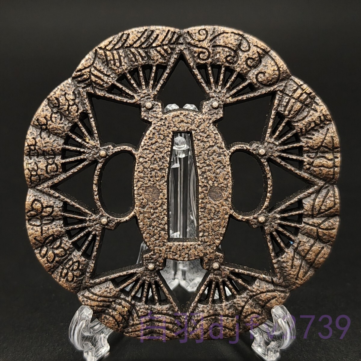- SY203 日本刀装具 刀鍔 扇子図 合金製 現代品 つば ツバ 刀剣美術 重さ約139G 厚さ約7.6mm