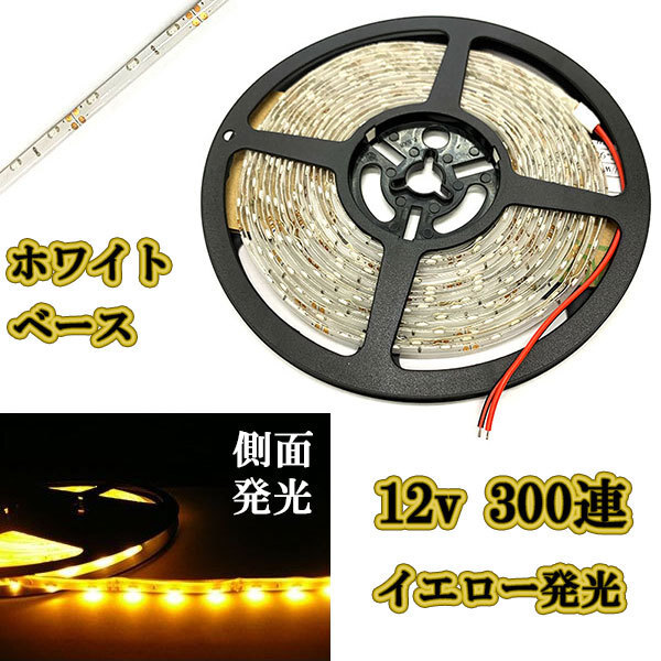 - 12v LEDテープライト5m 約300連 防水高輝度 ホワイトベース イエロー側面発光