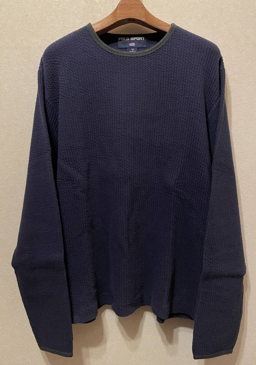 > 90sオールドPOLO SPORT-RALPH LAURENサーマル/スウェットLナス紺ヘビーウェイト針抜き良質コットン90年代ポロ ラルフローレンUSAビンテージ