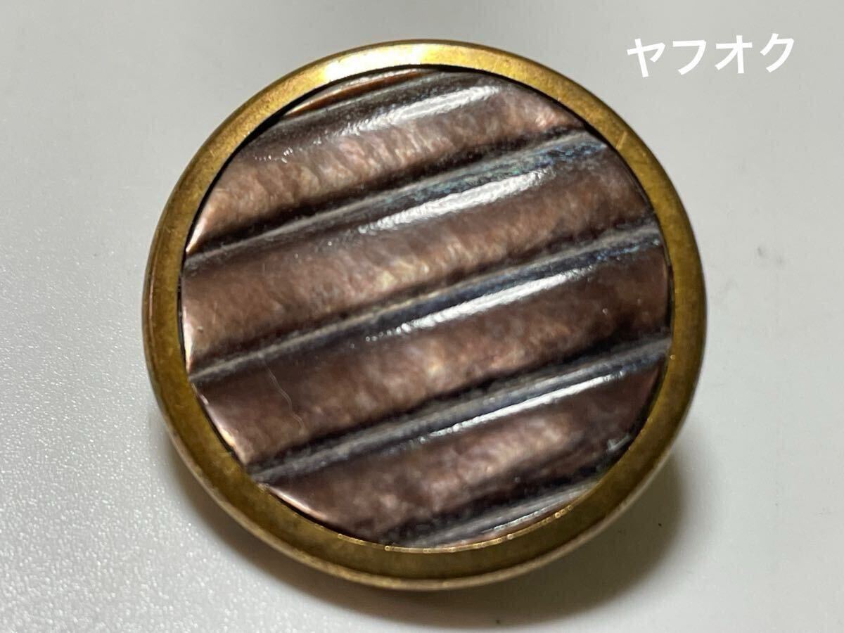 - 異素材ボタン 1個 フランス アンティーク ヴィンテージ 27ミリ メタル シェル ストライプ 250118-4