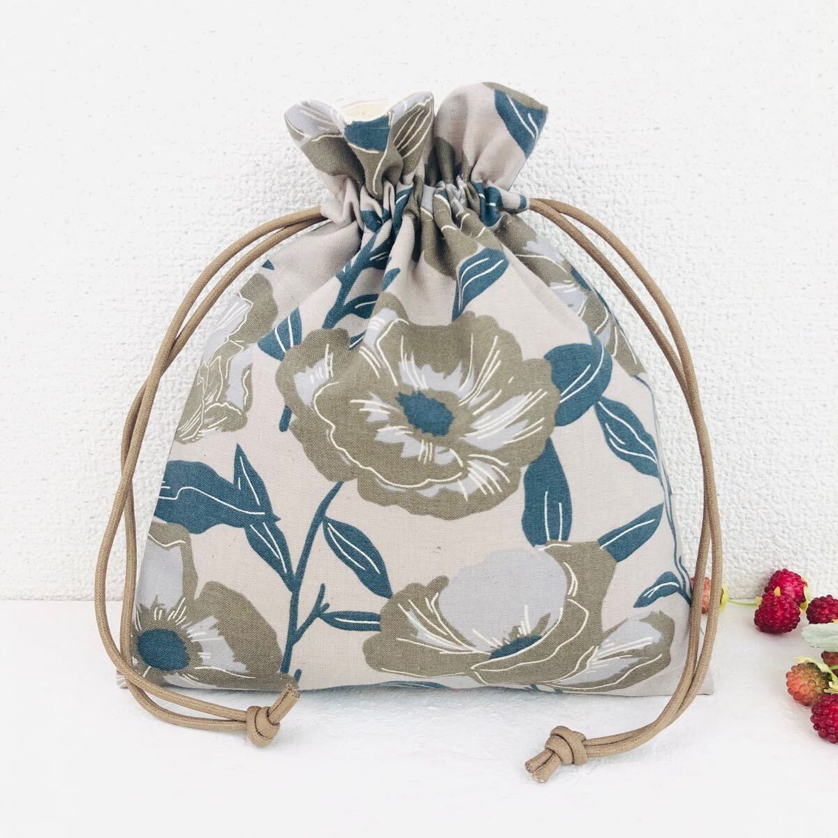- 大人のお花柄 フレンチマリアンヌ お花の巾着袋 23×21 フリル巾着袋 小物入れ ハンドメイド 巾着