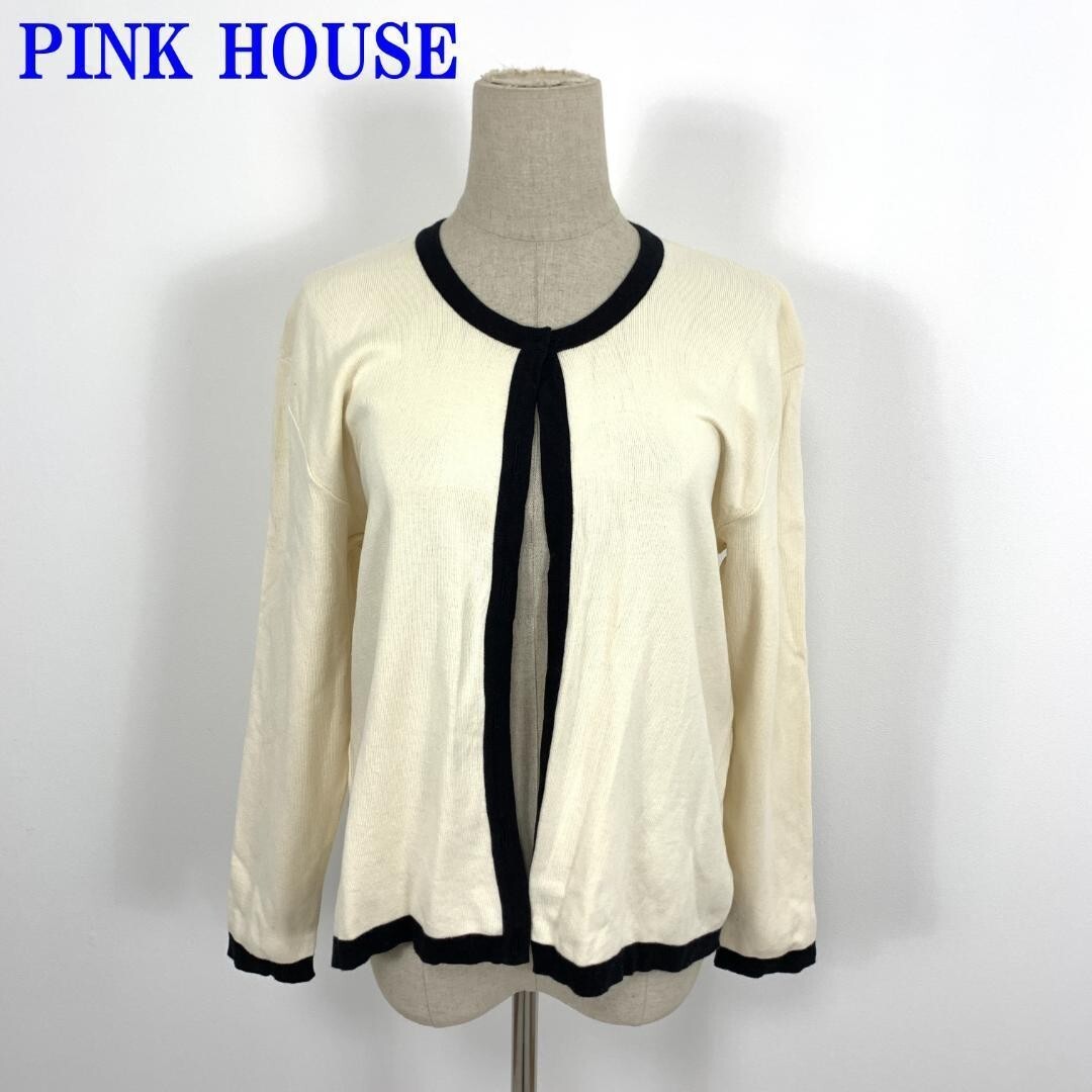 > ピンクハウス 長袖カーディガン 綿 バイカラー 白PINK HOUSE コットン ホワイト ブラック アイボリー 黒 M相当 C2015