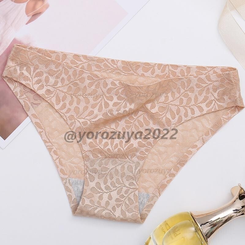 - 141-568-6 光沢 模様 ハーフバック ブリーフショーツ【ベージュ,Lサイズ】レディース 女性 下着 パンツ ブリーフ セクシー ランジェリー.1