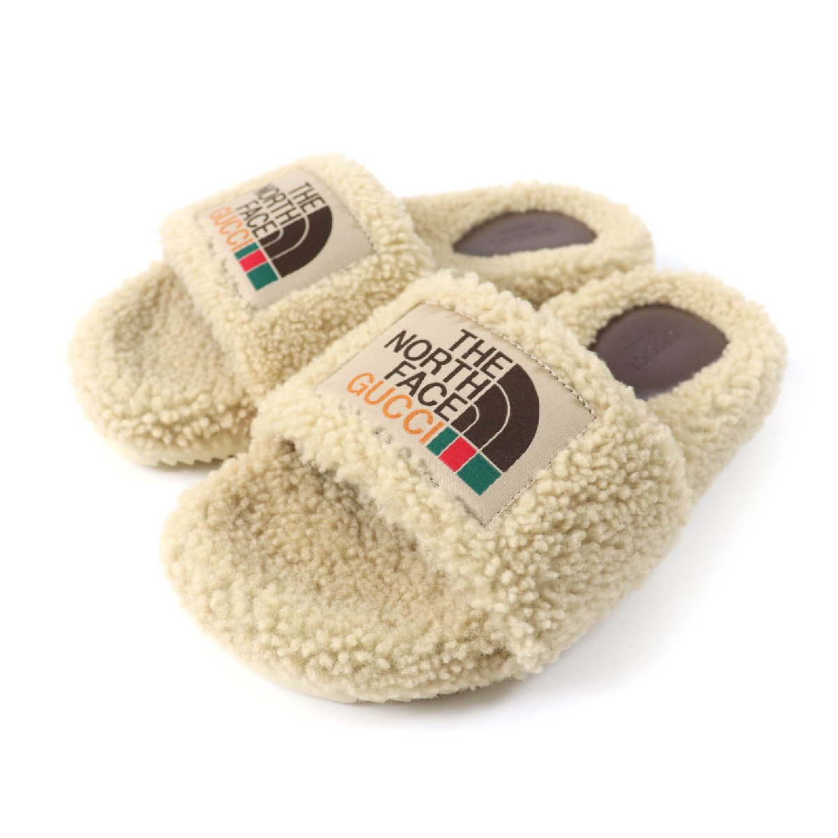 - 未使用品★GUCCI×THE NORTH FACE グッチ×ザ・ノースフェイス 679948 ロゴパッチ付 ムートン ボア サンダル ベージュ 36 保存袋付き 伊製