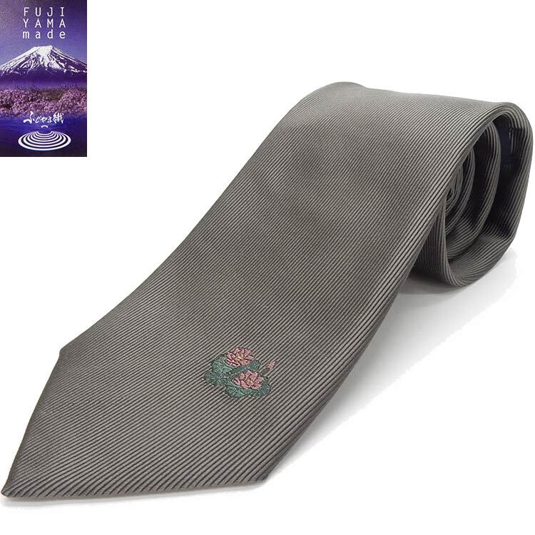 - ネクタイ 法事用 愛西/蓮の花 ふじやま織 シルク100% 濃グレー 日本製 NB-NT88