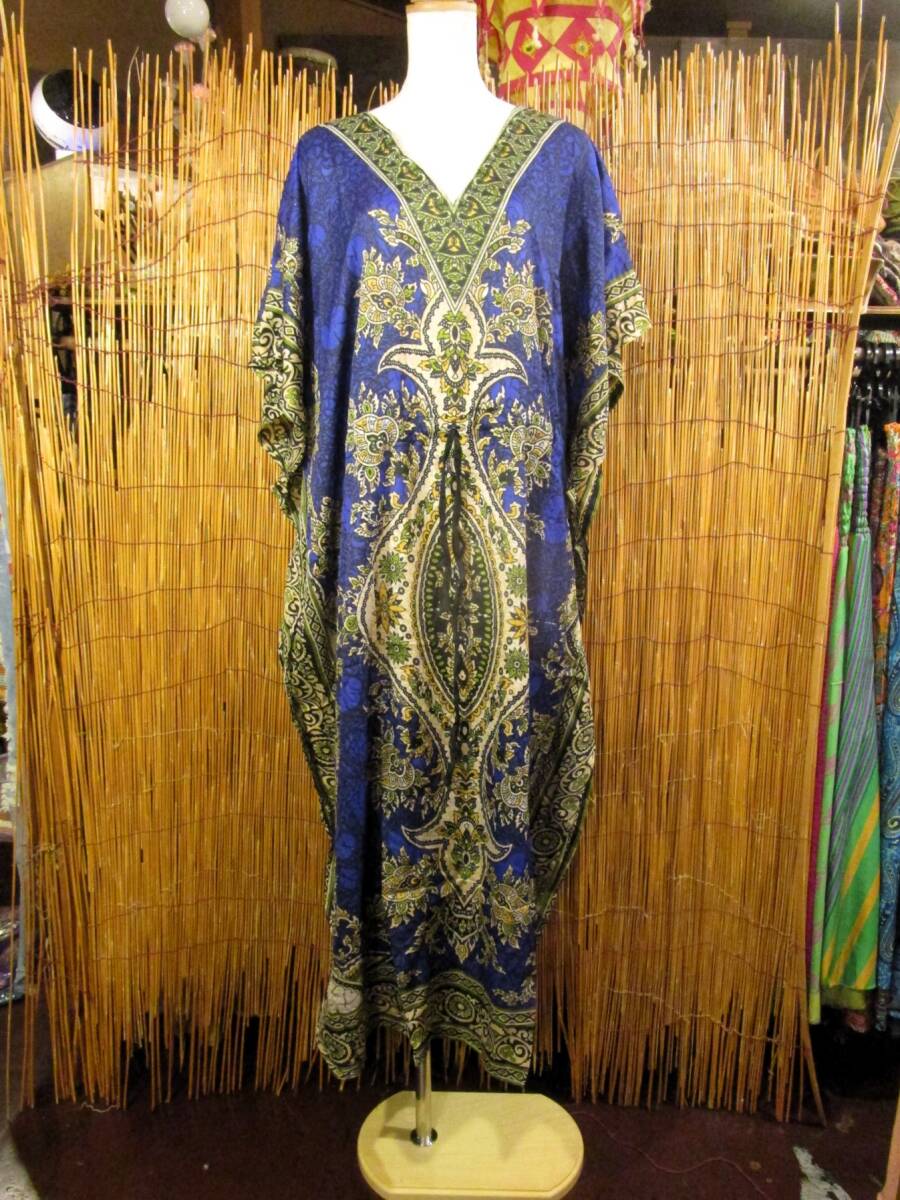 > ①訳あり*薄手ビスコース素材*ゆったりサイズ *アジアンプリント*ガラベーヤ*ポンチョ風*マキシ丈*ワンピース*ベリーダンス