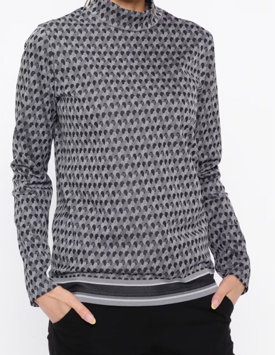 > 新品正規品 マスターバニー パーリーゲイツ サイズ2 総柄 モックネック 現行モデル ブラックグレー レトロ 吸水速乾性 送料無料