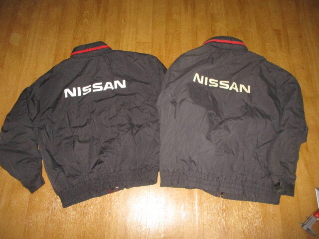 - 日産自動車 ピットワーク 収納フード付きオフィシャル防寒中綿入りジャケット・ブルゾン サイズ不明(M~L相当)2着 美中古
