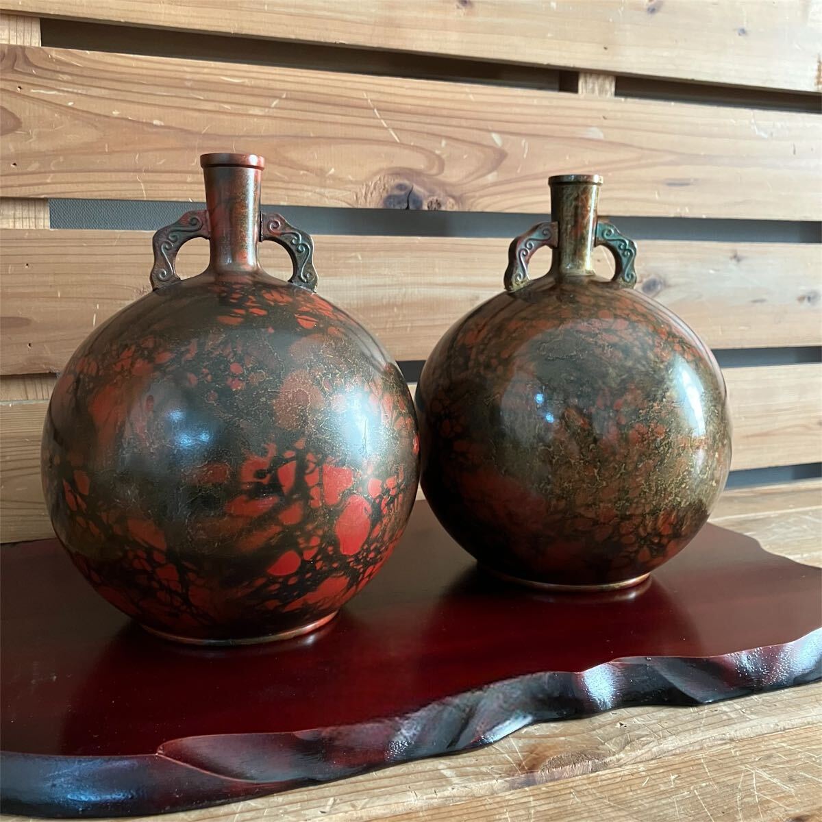 - 花瓶 茶道具 金工細工 花器 花生 花入 飾壺 飾壷 壺 非鉄 インテリア 一対 管L-83