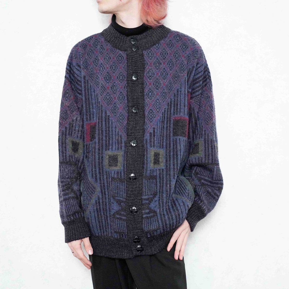 - EU VINTAGE GIANNI M PATTERNED DESIGN KNIT CARDIGAN/ヨーロッパ古着柄デザインニットカーディガン