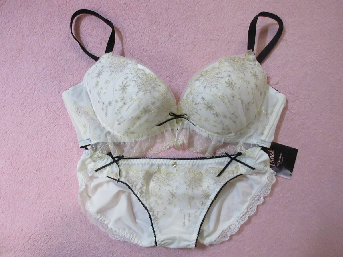 - ♪新品♪廃盤♪C75‐M チュチュアンナ 黒ブラック 白クリーム 金ゴールドラメ 宝石 ブラジャーショーツセット Bの方も プレゼントに♪