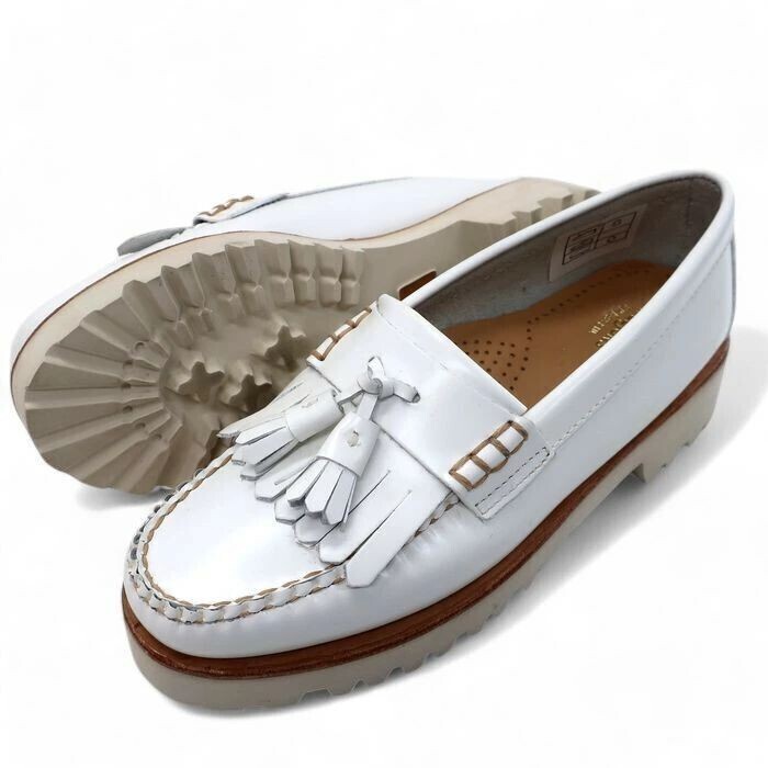 - G.H.BASS Weejuns ジーエイチバス 定価2.9万 WEEJUN 90S ESTHER KILTIE レザー キルト タッセル ローファー BA41820 白 5.5▲066▼41127k03