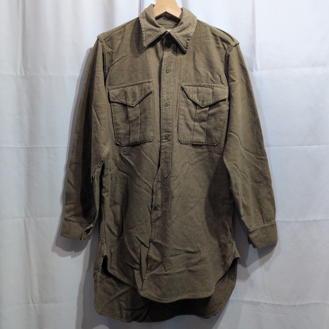 - 40s 50s Vintage イギリス軍 ブリティッシュアーミー ウールオフィサーシャツ M~L相当 ミリタリー 長袖 オリーブ ヴィンテージ ビンテージ