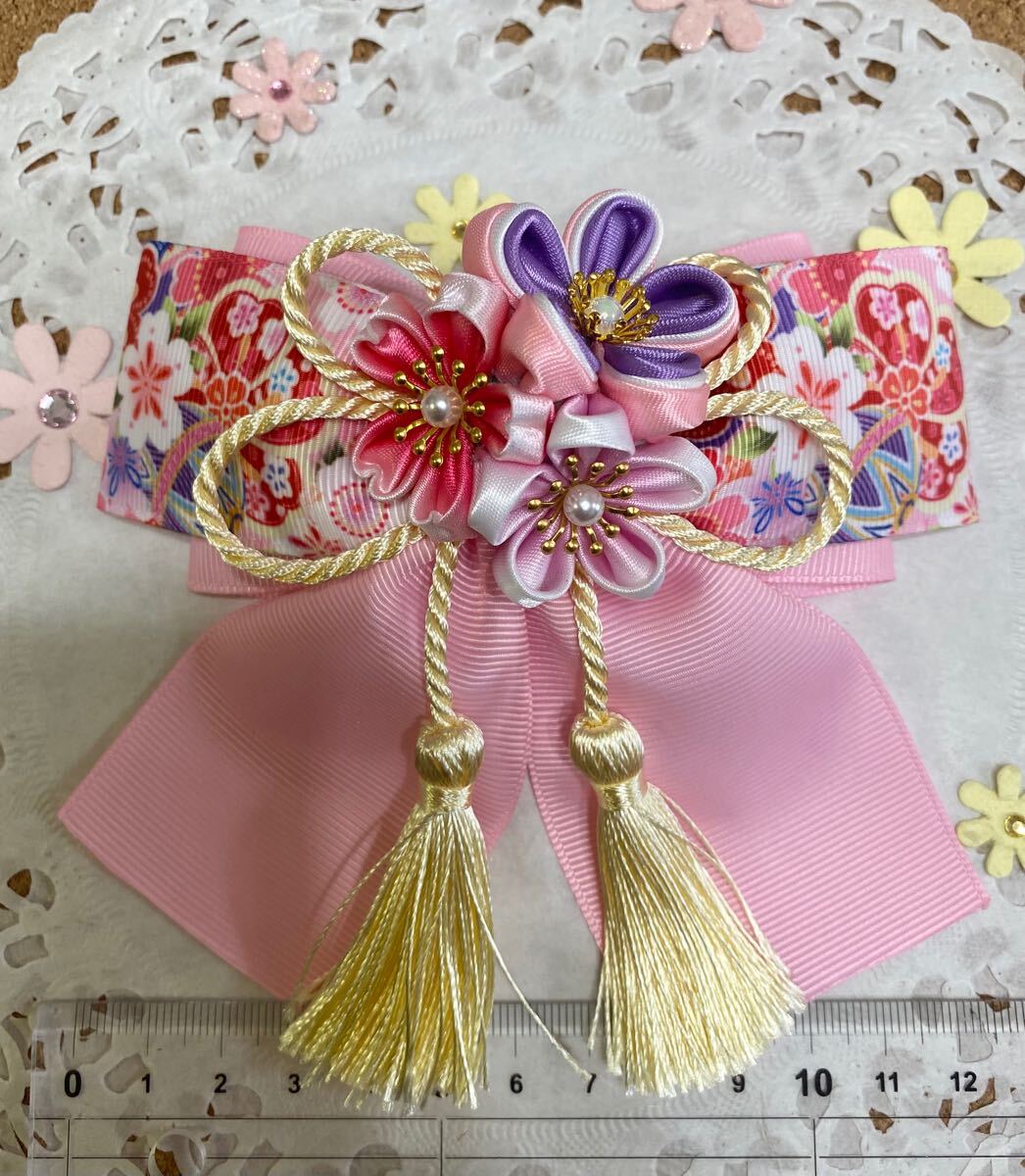 - ハンドメイド リボン 和風ヘアクリップ 45桜 着物 袴に 七五三 髪飾り ネコポス送料込み