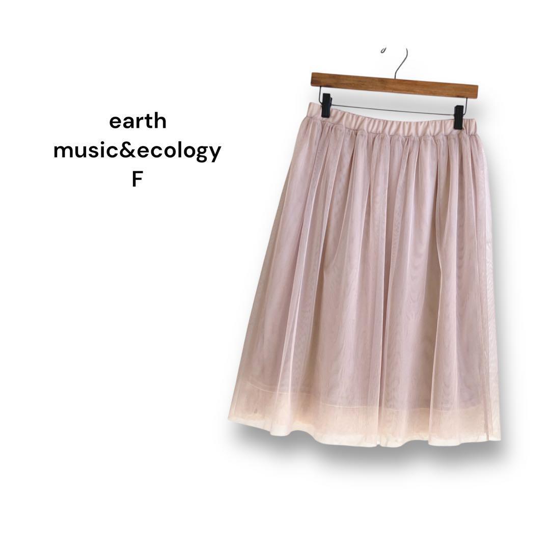 - 良品アースミュージック&エコロジー レーススカート【F】膝丈 総ゴム ベージュ