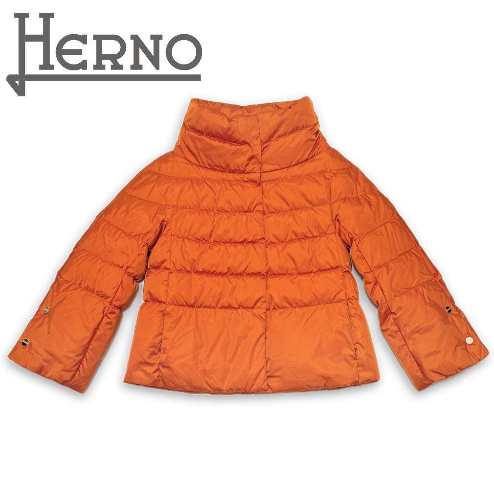 - 新品ヘルノHERNOハイカラー袖ボタン ダウンジャケット オレンジ#38★