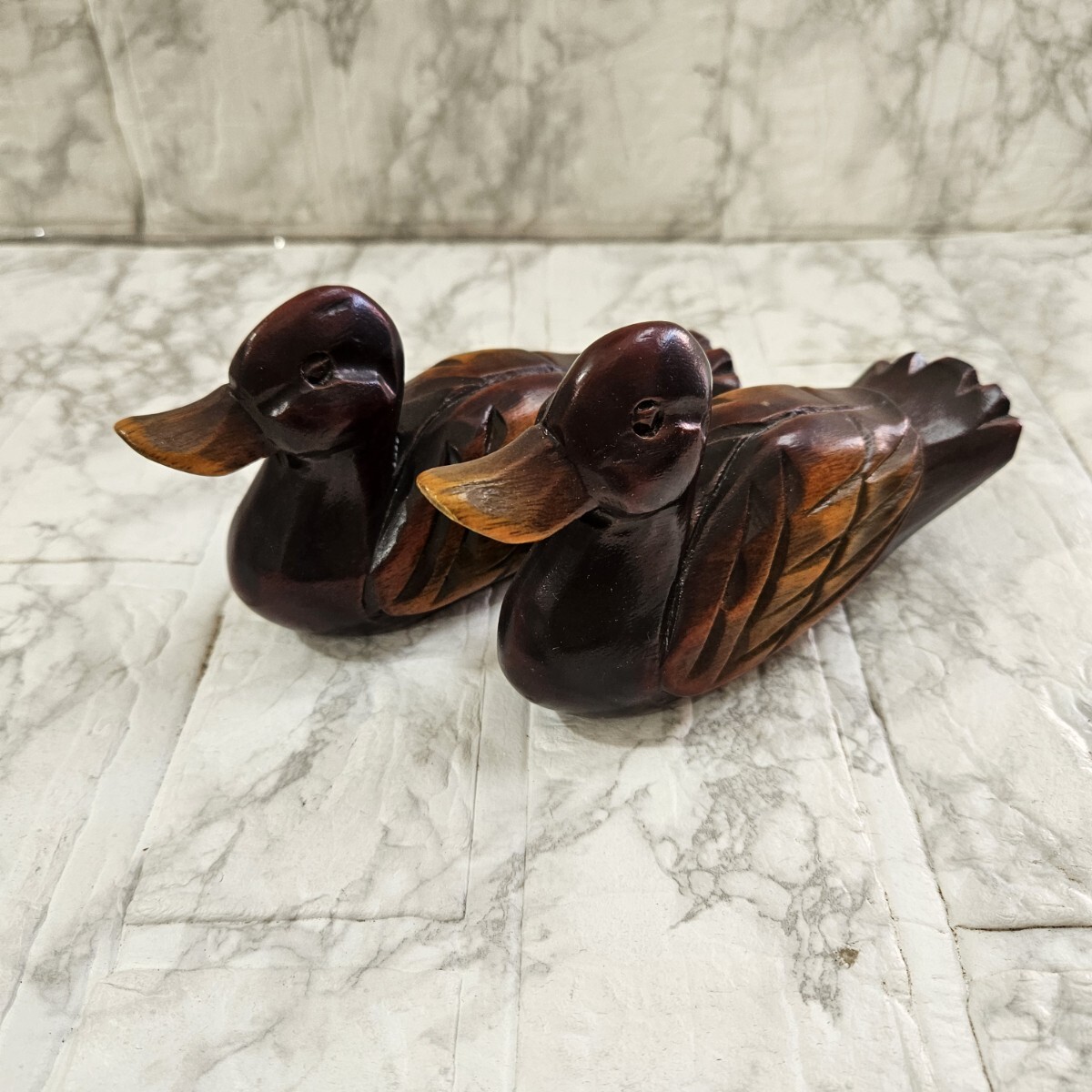 - 【美品】鴨 木製 2個セット 置物 飾り コレクション インテリア