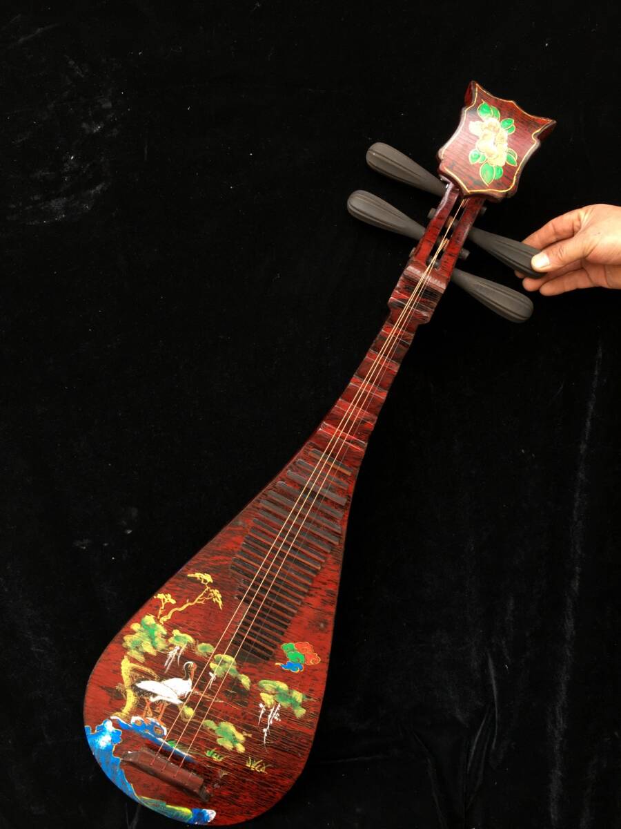 - 旧蔵 清 古代楽器 木胎漆器 松鶴延年 琵琶 和楽器 極細工 中国古玩 骨董品 201-23