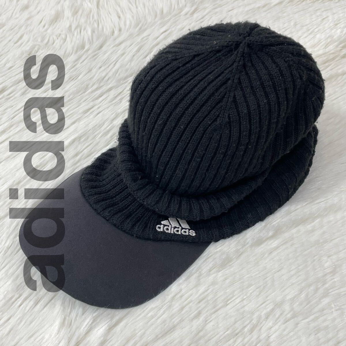 - adidas アディダス パフォーマンス ロゴ 刺繍 つば付き ニット帽 帽子 ブラック CP071