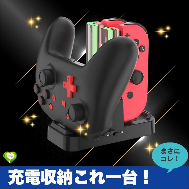- 【充電収納これ一台!】Switchコントローラージョイコン充電スタンド 1年保証 充電ホルダー 3WAY充電可能 充電指示LED 便利 整理整頓