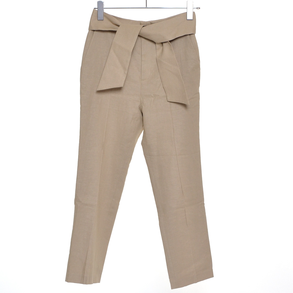- ■491618 未使用品 Mila Owen ミラオーウェン リネン ウエストリボン ストレートパンツ サイズ1 麻混 レディース ベージュ
