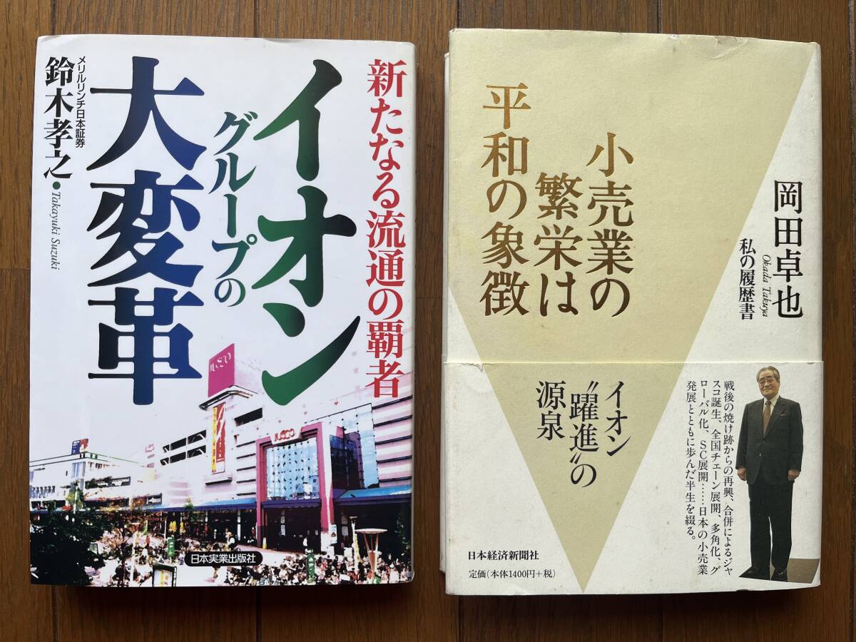 > 2冊 岡田卓也「小売業の繁栄は平和の象徴 日本経済新聞 私の履歴書」鈴木孝之「イオングループの大変革 新たなる流通の覇者」ジャスコ AEON