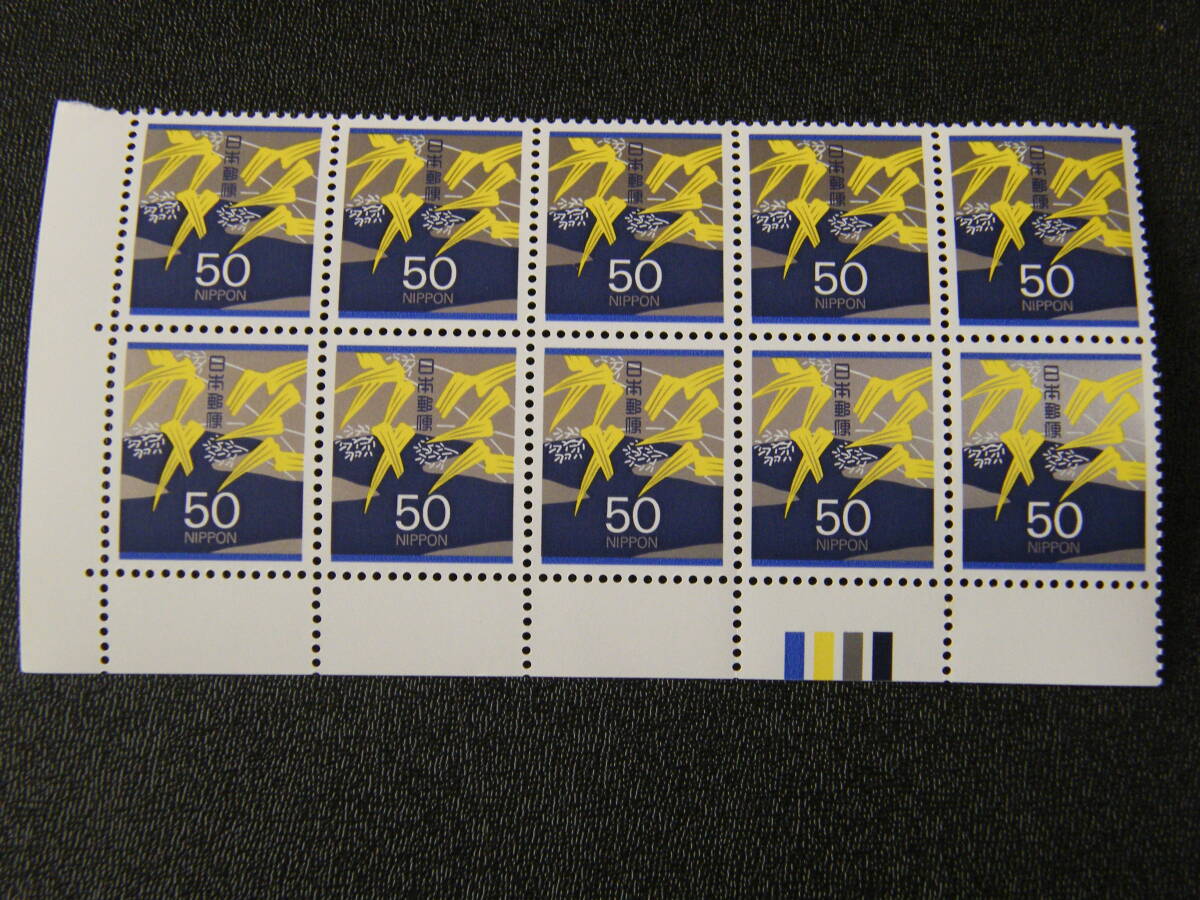 - 第4次慶弔切手 アシ 50円 カラーマーク下 10枚ブロック 未使用(CM付)