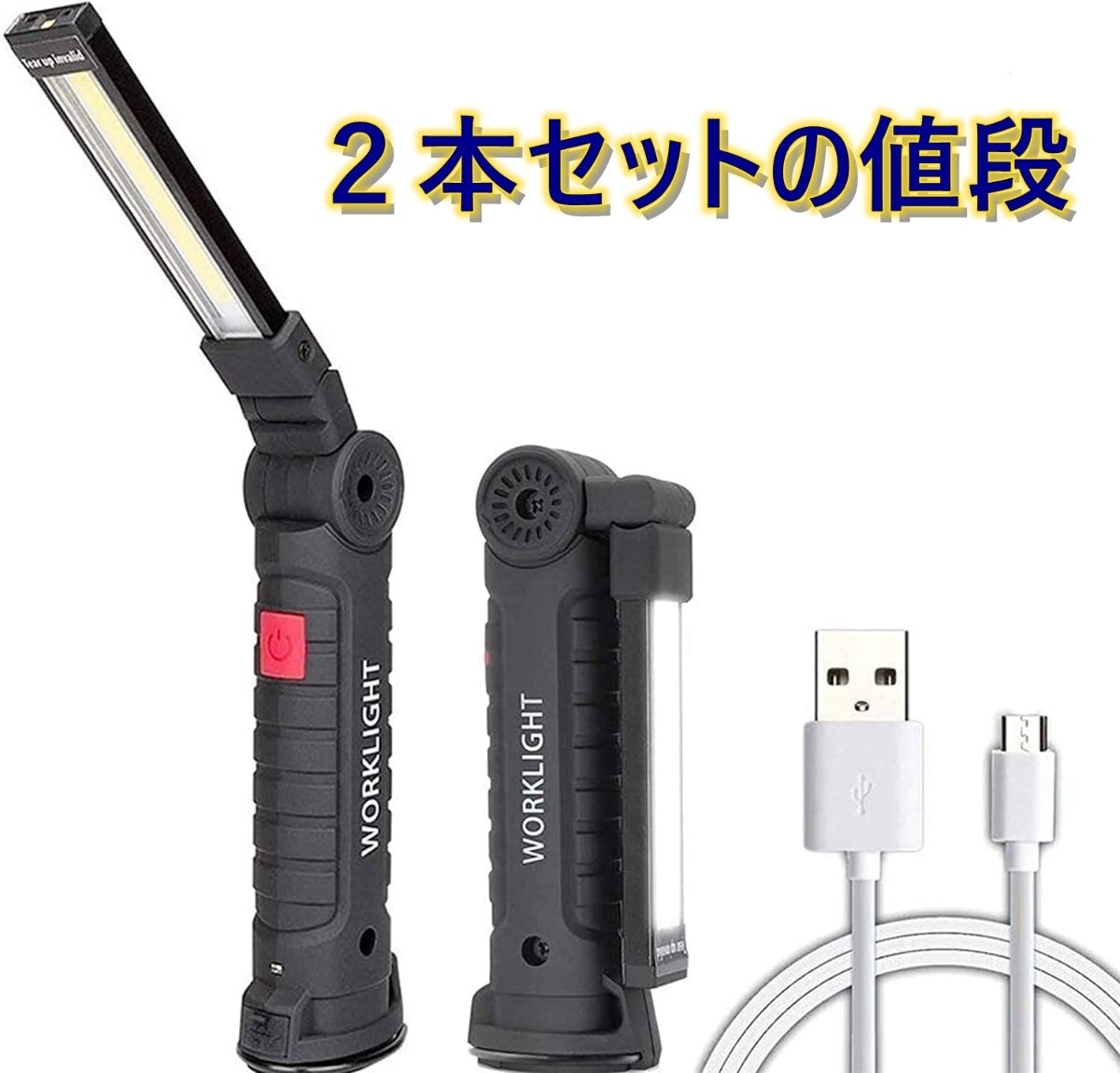 - 【二点セット】LED作業灯 ワークライト 強力COBライト ハンディライト 折り畳み式 内蔵バッテリーUSB充電式 マグネット付き