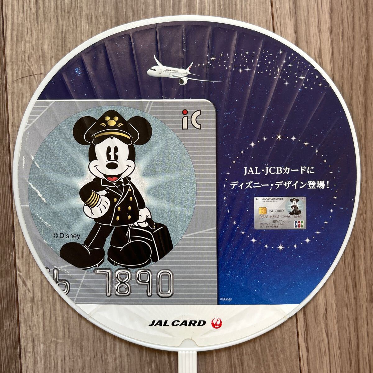 > 非売品 JAL ミッキーマウス(ミッキー)うちわ 団扇 扇子 レア品 JALカード コラボ 飛行機 かわいい 可愛い ディズニー Disney おしゃれ