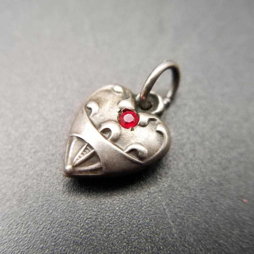 - WWII期 ヴィンテージ スウィートハートジュエリー 赤石 アールデコ 925 シルバー チャーム ペンダントヘッド 銀 レトロ Y21-F