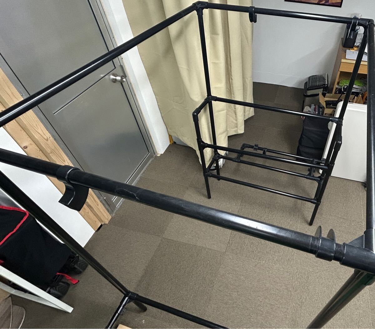 - ハイエース グランドキャビン リア ラック イレクター キャンプ テーブル チェア テント置き ハンガーラック フェンダー上に
