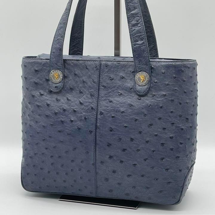- 【美品】FARAONCINA ファラオンチーナ OSTRICH オーストリッチ ダチョウ レザー ネイビー フォーマル レディース 通勤 通学 BG351115D