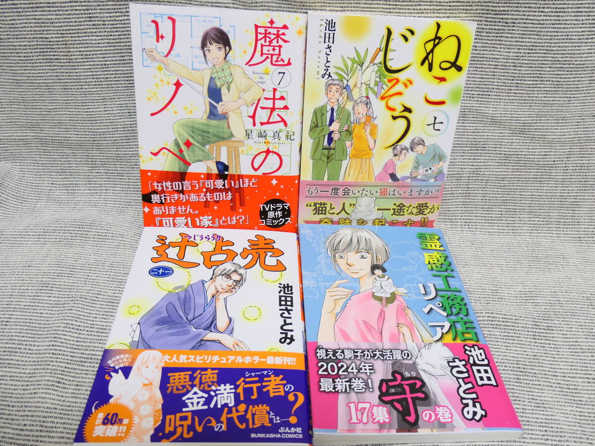 - 4冊池田さとみ「ねこじぞう7」「辻占売」「霊感工務店リペア17」星崎真紀「魔法のリノベ7」最新号多数!面白いのでお勧め!全巻美本