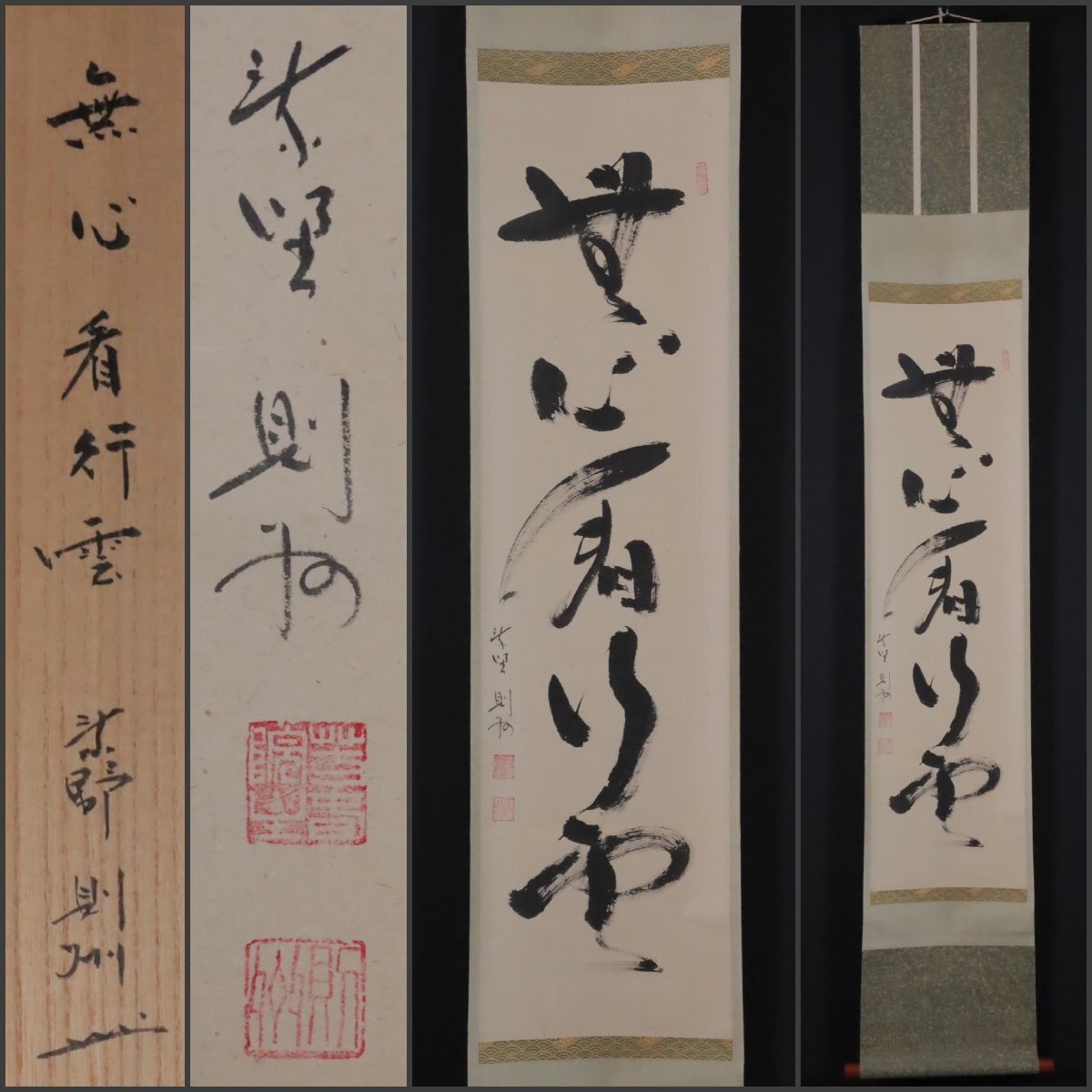 > 【模写】吉】11864 秋吉則州 書「無心看行雲」 共箱 中村祖順師事 臨済宗 大徳寺 塔頭 芳春院住職 仏教 茶掛け 茶道具 禅語 掛軸 掛け軸