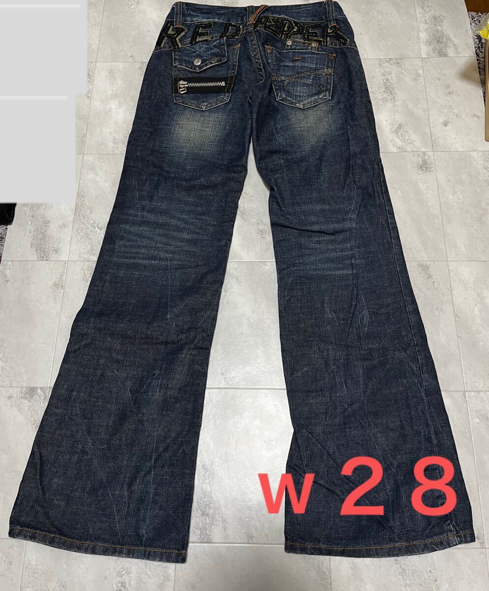 - RED PEPPER★W28 ブーツカットジーンズ デニム パンツ レッドペッパー ロゴ 紺 フレアパンツ 股下長め