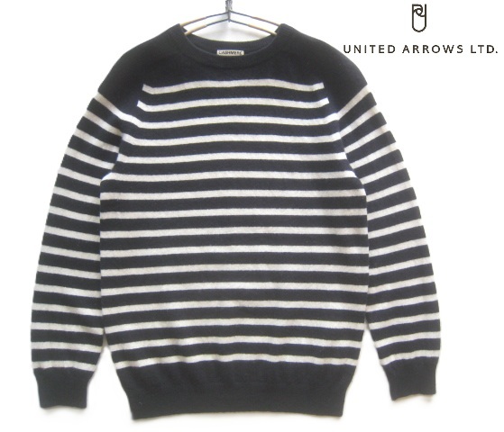 - 極上!!ユナイテッドアローズ ビューティ&ユース UNITED ARROWS BEAUTY&YOUTH*カシミヤ100% ボーダー柄ふわとろニットセーター S 紺×白