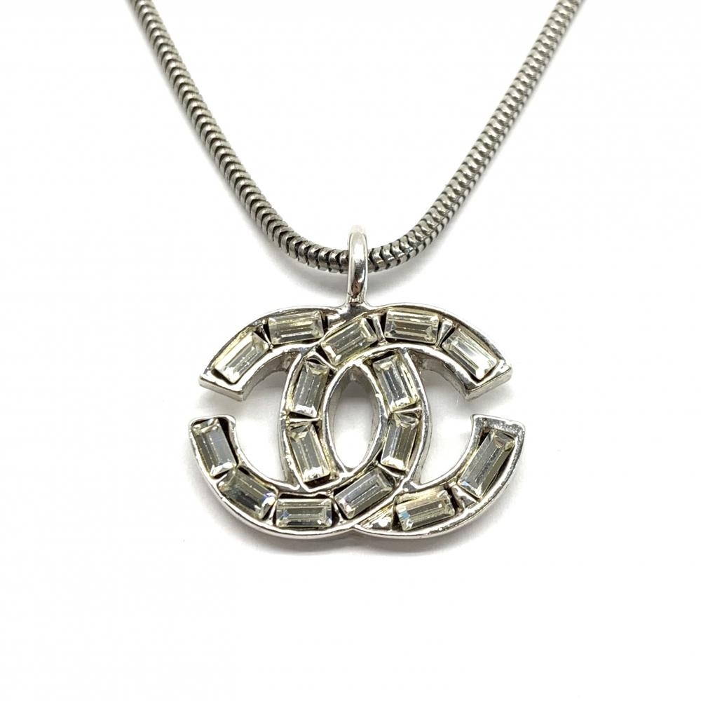 - CHANEL シャネル 01P ココマーク ネックレス ラインストーン クリア シルバーカラー アクセサリー レディース 管理RT40565