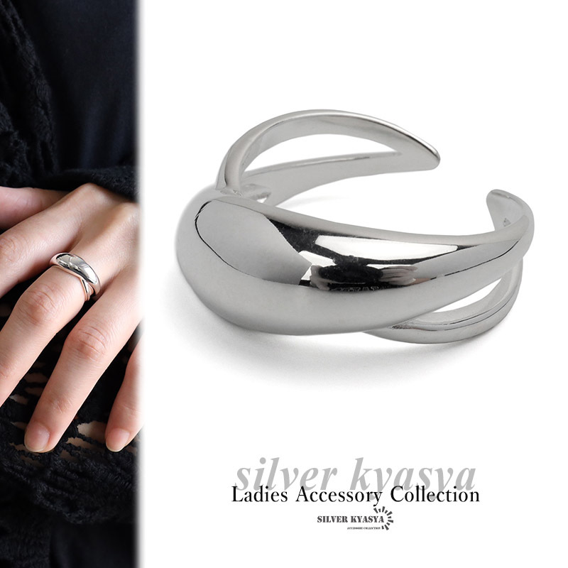 - 存在感 造形美 幾何学リング 滑ら 2連リング シルバー925リング シンプル指輪 シルバーリング 金属アレルギーフリー