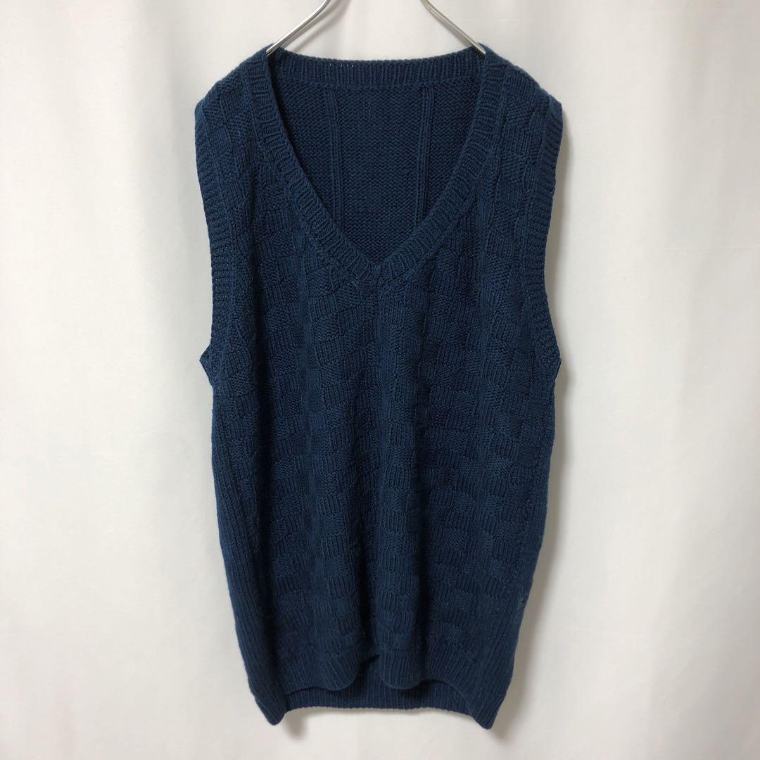 - N-2938 アメリカ古着 ハンドメイド ニット ベスト ウール XL