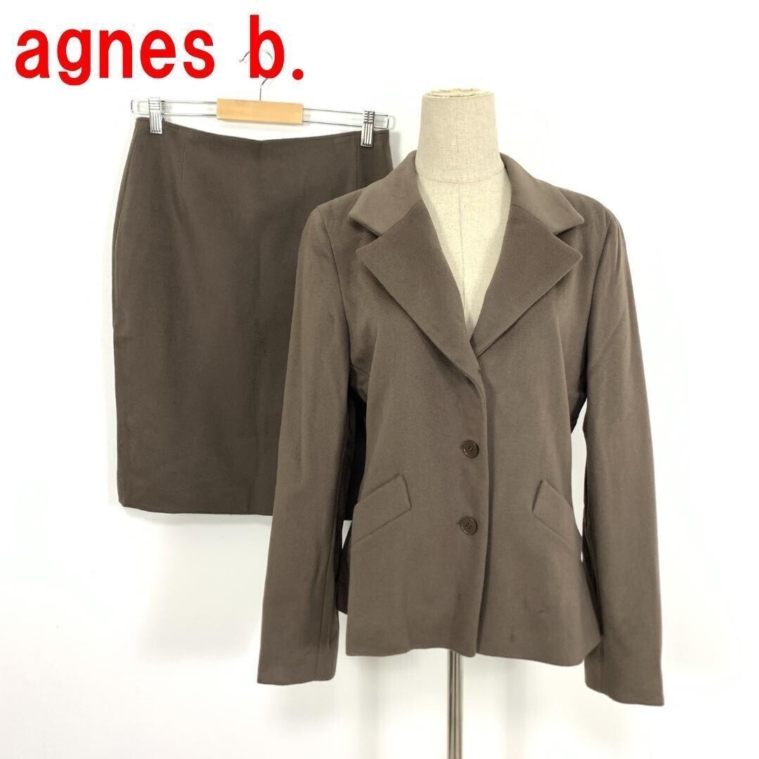 - A4908 アニエスベー スカートスーツセットagnes b. ブラウン テーラードジャケット ひざ丈 タイトスカート ウール 裏地あり 茶色 2