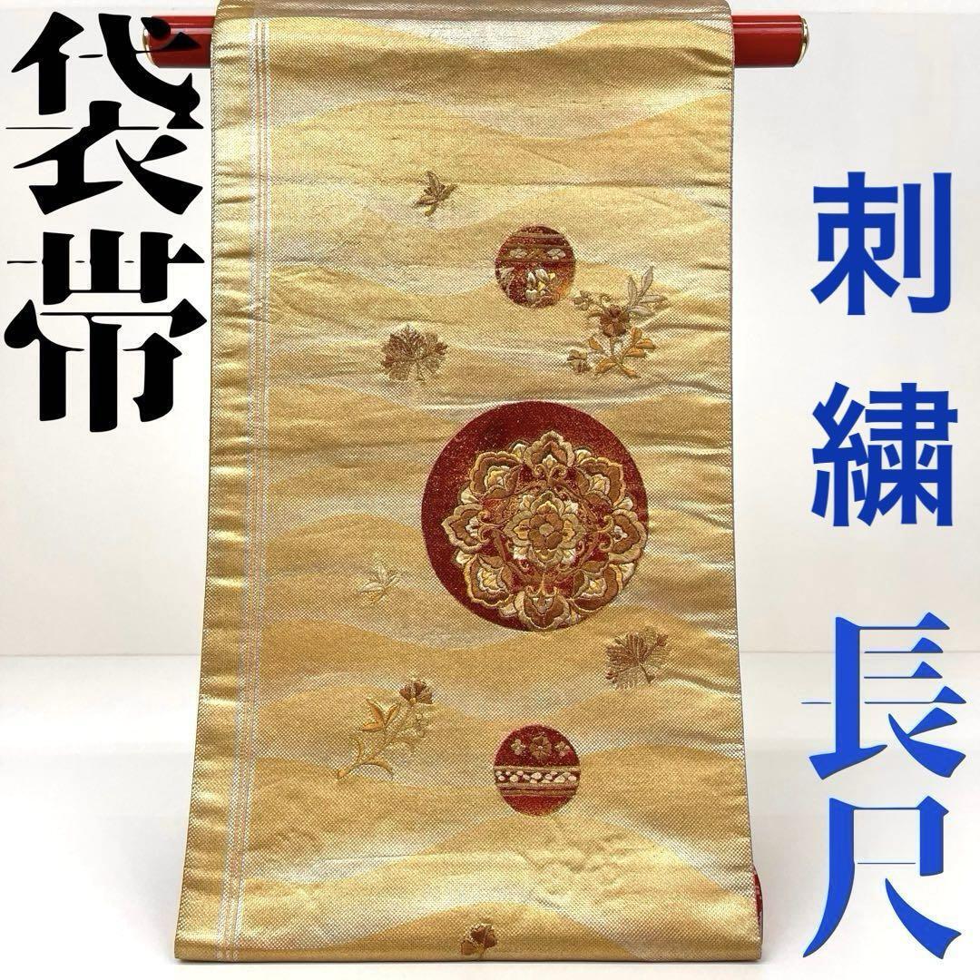 > 【着物と帯 時流】F2533◆正絹 袋帯◆長尺 刺繍 綴れ織 華文 ゴールド
