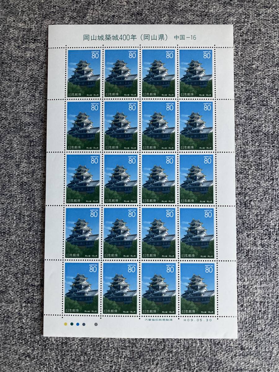 - ★未使用 ふるさと切手 岡山城 築城400年 岡山県 中国 1997年 平成9年 切手シート 80円 20枚 日本郵便